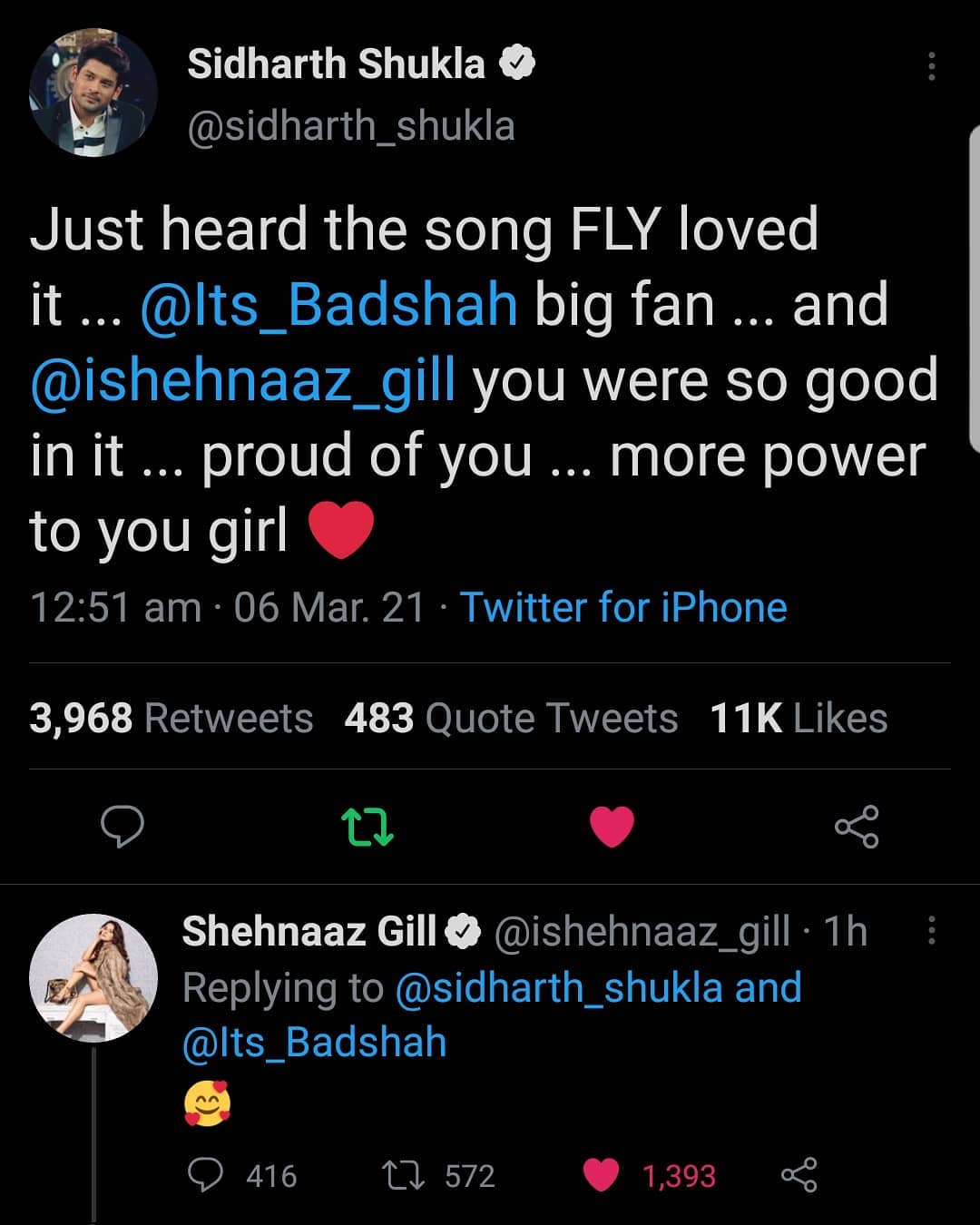 Sidharth Shukla Compliments Shehnaaz Gill For Fly Song With Badshah Actress Responds Tv News India Tv